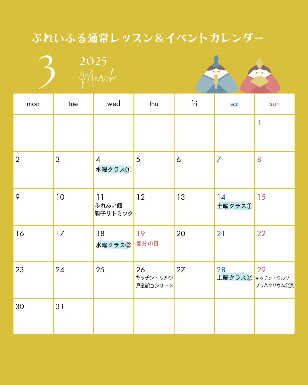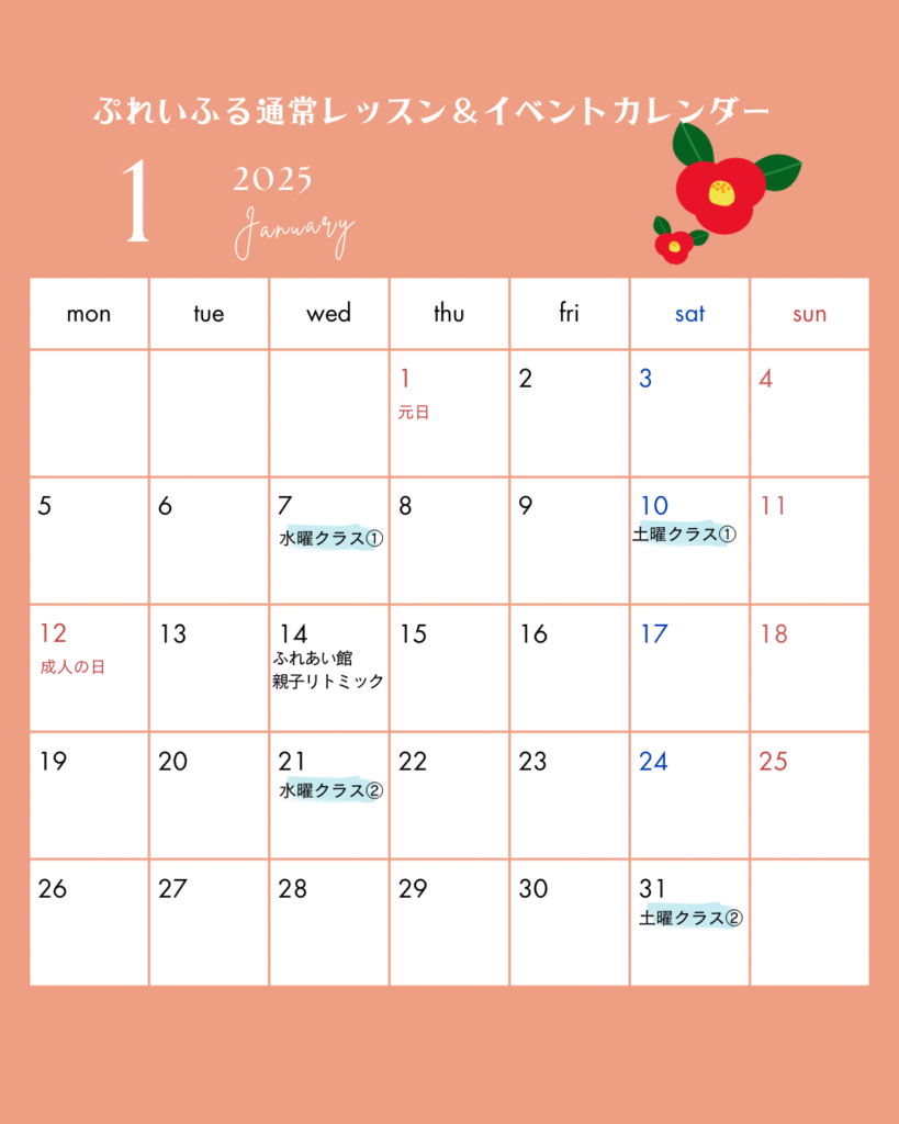 2025年度の通常レッスン&イベント予定です。